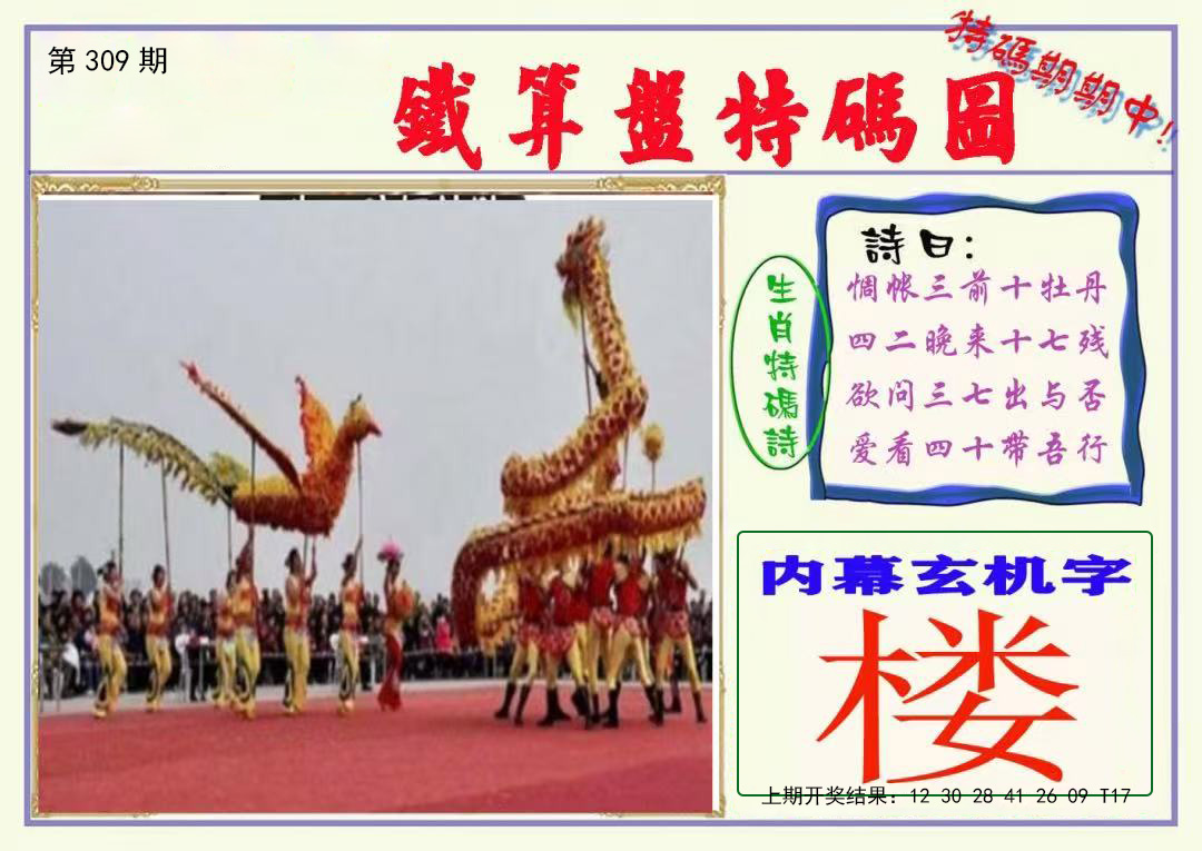 | 308期 | 蛇鸡狗虎牛猴马 | 17牛 |
