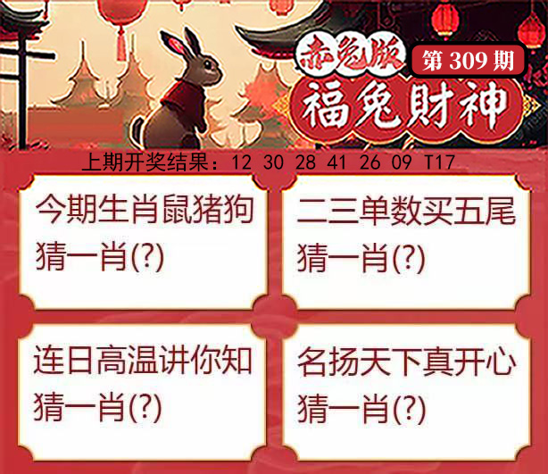 | 309期 | 鸡马蛇兔猪虎鼠 | ????? |