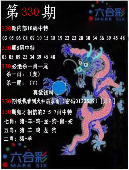 | 330期 | 牛猴狗蛇猪羊鼠 | ????? |